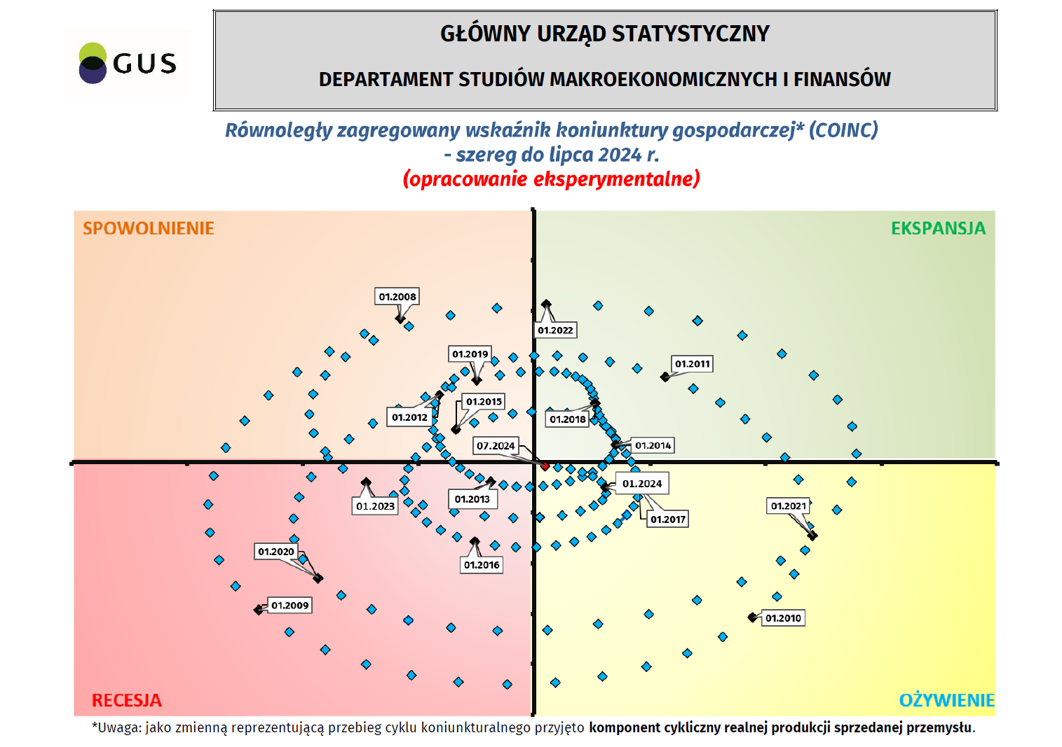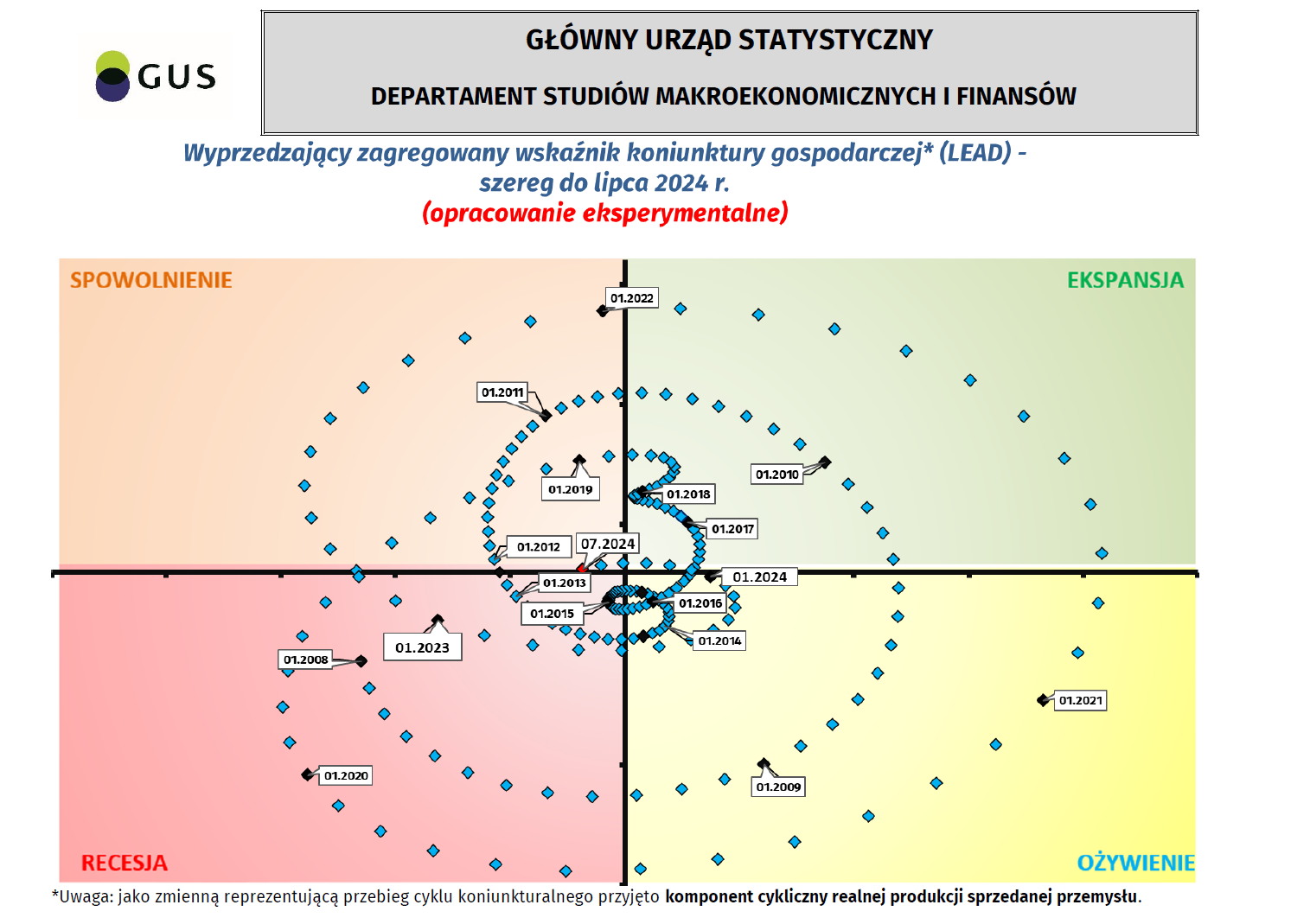 - Równoległy oraz wyprzedzający zagregowany wskaźnik koniunktury, zegar koniunktury - szereg do października 2024 r.